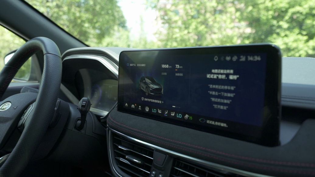 进入车内,相对于外观让人眼前一亮,可能锐际整个车内的设计就比较常规化,是非常标准的福特的风格。中控台采取了一个层次分明的布局,然后其他的地方设计都比较简单,然后尽可能的让TA的功能划分区域一目了然。在整个车内观感和体验比较好的,一共有三个地方:一个是旋钮换挡;还有是中控的大屏;然后再加上它的液晶仪表。